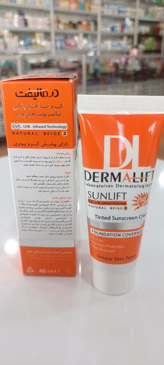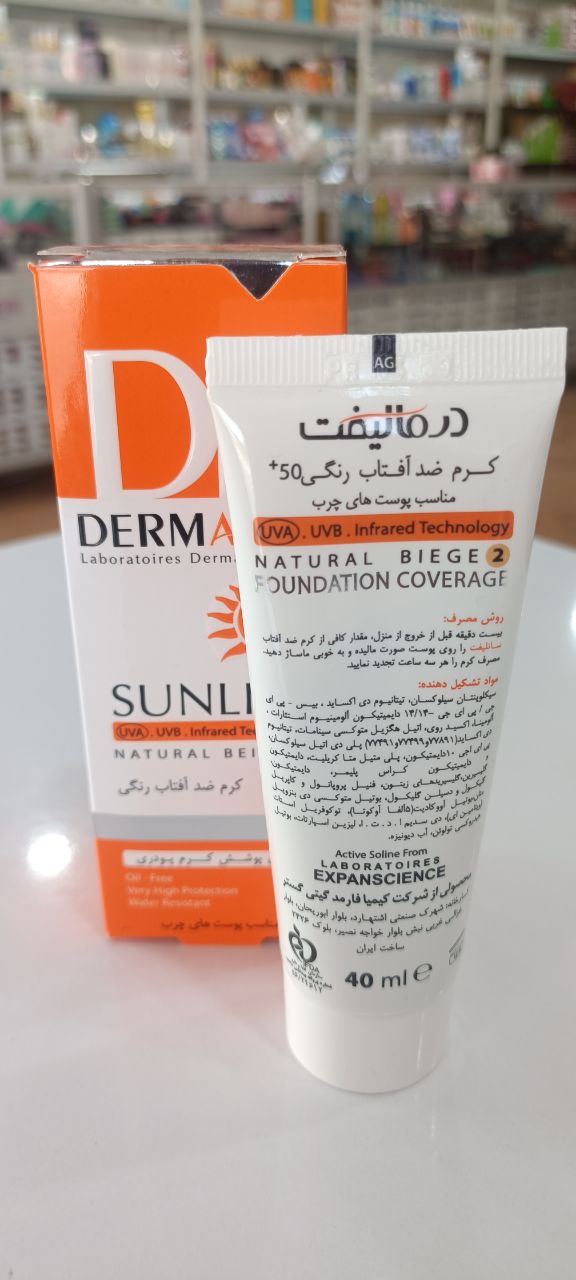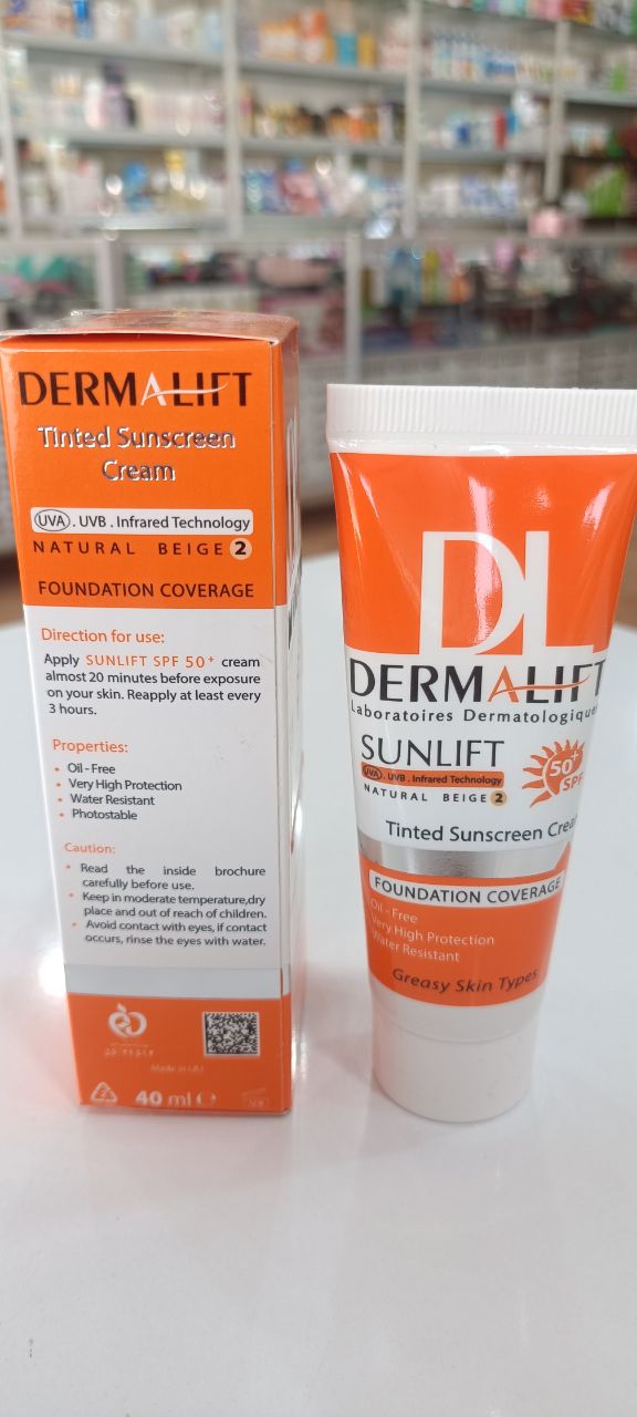 خرید کرم ضد آفتاب درماتیفت Sunlift SPF 50 رنگ بژ طبیعی ۲ برای پوست چرب فاقد چربی