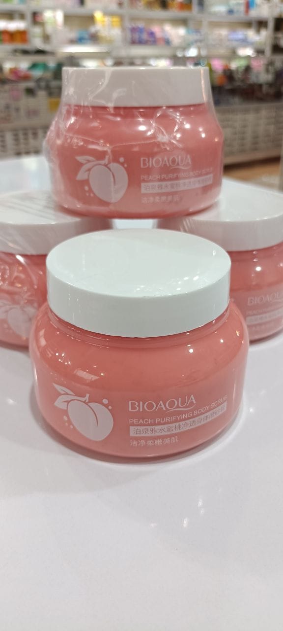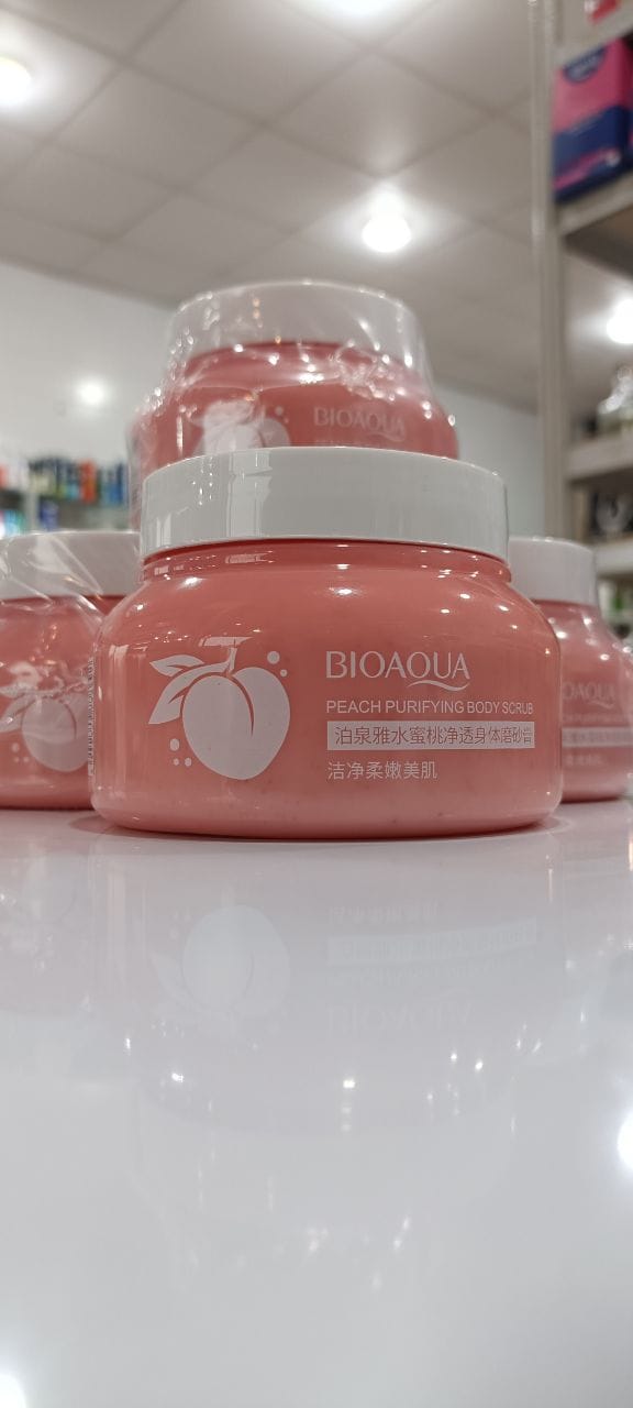 اسکراب بدن bioaqua-peach-purifying-body-scrub اصل با عصاره هلو و ذرات لایهبردار طبیعی، پوست بدن را نرم، روشن و لطیف میکند. رایحه دلپذیر، اثر ضد خشکی و مرطوبکننده قدرتمند دارد.