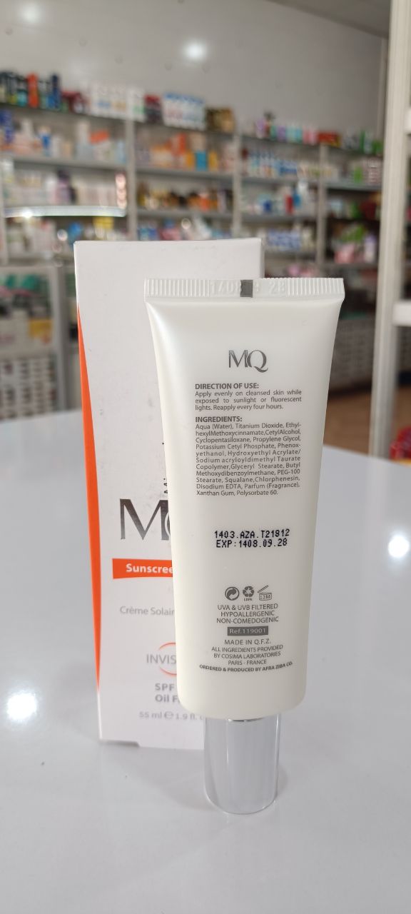 خرید ضد آفتاب MQ بژ طبیعی — کرم رنگی SPF50 با فرمول Oil‑Free و پوشش نامرئی (Invisible) که از پوست در برابر UVA/UVB محافظت میکند. حجم: 55 ml.