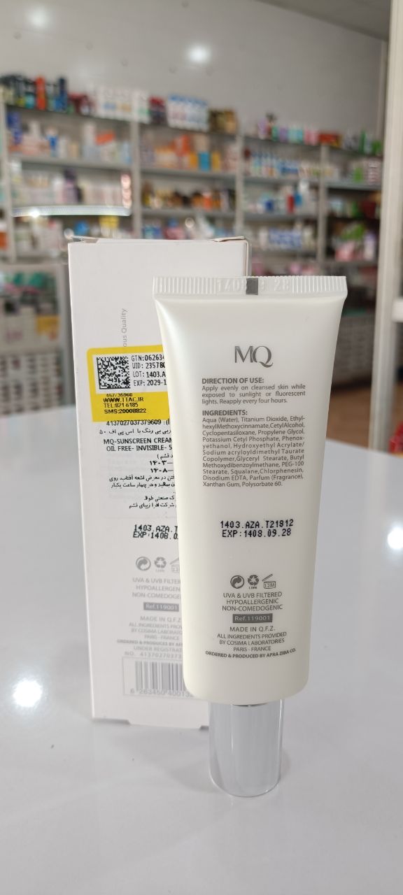 - خرید ضد آفتاب MQ بژ طبیعی | SPF50 — Oil‑Free، Non‑Comedogenic، پوشش طبیعی و نامرئی | 55ml